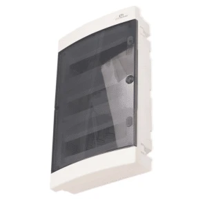 Cechy produktu: Rozdzielnica wykonana jest z wysokostabilnej masy termoplastycznej ABS o bardzo dobrych własnościach dielektrycznych i mechanicznych. Jej głównymi zaletami są : atrakcyjny, estetyczny, nowoczesny wygląd, łatwość i szybkość montażu.Zasadniczymi elementami rozdzielni cy są : - obudowa dolna wyposażona w szynę montażową TH35, zaciski PE i N - ścianka czołowa wyposażona w kołki szybkiego montażu ( do połączenia z obudową dolną) oraz drzwi ( białe lub przezroczyste).