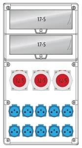 RS rozdzielnica siłowa 13-modułów wyłącznik L/P 2X2P+Z, 3P+N+Z 16A, 3P+N+Z 32A natynkowa, IP44 6210-17