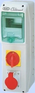 Rozdzielnica RSS‑01 z rozłącznikiem 0‑1 25A okienko 5 modułów okablowana 1x16A 3P+N+Z 400V IP44 942016