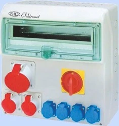 Rozdzielnica RSS‑05 z rozłącz. 0‑1 100A okienko 18 mod okabl 1x63A 3P+N+Z 400V, 2x16A 3P+N+Z 400V, 4x16A 2P+Z 250V IP44 942057
