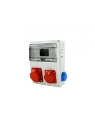 Rozdzielnica siłowa n/t 1x16A 5P 1x32A 5P 2x230V 11-mod. IP44 NBOX-11M.4 NEXT. Wysokiej klasy natynkowa RS, wykonana z ABS w kolorze szarym. Oferowana w naszym sklepie elektrycznym rozdzielnica siłowa NBOX-11M.4 wyposażona jest w 2 gniazda siłowe i 2 gniazda 230V. Posiada 1 gniazdo siłowe 400V na 32A 5P i 1 gniazdo 400V na 16A 5P. Oba oznaczone są kolorem czerwonym i zabezpieczone są klapkami w tej samej barwie. Zlokalizowane są od frontu obudowy, w jej dolnej części. Powyżej gniazd siłowych znajduje się miejsce na montaż aparatury modułwoe. Model o kodzie producenta 3647924 pozwala na montaż modułówki zajmującej do 11 modułów. Całość jest uzbrojona w szynę DIN oraz listwy zaciskowe N+PE. Miejsce zabezpieczone jest klapką ochronną przezroczystą, przydymioną, uchylaną ku górze. Klapka zamykana jest na klik.