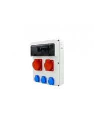 Na górze frontu znajduje się wbudowana szyna TH35, mogąca pomieścić do 13 modułów elementów na do montażu na szynie. Wyposażona jest też w listwy zaciskowe N+PE. Część ta zabezpieczona jest półprzezroczystą, przydymioną klapką wykonaną z poliwęglanu. Na środku znajduje się 1 gniazdo siłowe 16A 5P i 1 gniazdo siłowe 32A 5P na 400V. Oba zabezpieczone są czerwonymi klapkami. W dolnym rzędzie znajdują się 3 gniazda zasilające na 230V, z uziemieniem. Ich cechą charakterystyczną są klapki w kolorze niebieskim.