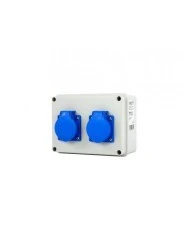 Rozdzielnica siłowa n/t 2x230V NBOX15.3 Next. Natynkowa rozdzielnia RS wyposażona w 2 gniazda zasilania na 230V. Rozdzielnia wyposażona jest w listwy N+PE. RS NBOX15.3 wykonany jest z ABS. Całość posiada stopień szczelności IP44. Rozdzielnia siłowa o wymiarach 118x158x74mm dedykowana jest do montażu natynkowego. Stopień odporności na uderzenia IK08. Gniazda zasilania znajdują się we frontowej części rozdzielni siłowej.