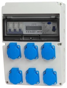 6x gniazdo 16A 3P 230V podpięte pod sześć bezpieczników C16A 1P