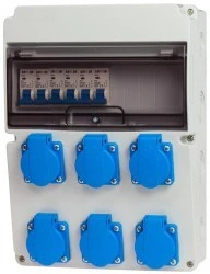 6x gniazdo 16A 3P 230V podpięte pod sześć bezpieczników C16A 1P