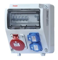 rozdzielnica wyposażona w gniazda i zabezpieczenia: