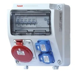 rozdzielnica wyposażona w gniazda i zabezpieczenia: