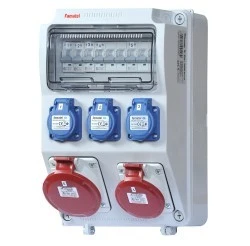 rozdzielnica wyposażona w gniazda i zabezpieczenia: