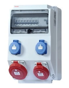 rozdzielnica wyposażona w gniazda i zabezpieczenia: