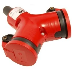 Rozgałęziacz podwójny z bolcem i zatyczką PCE to praktyczny osprzęt elektryczny 2P+Z 16A, przeznaczony do rozdzielania zasilania na dwa odbiorniki w instalacjach wymagających ochrony styku ochronnego i podwyższonej odporności na warunki otoczenia.