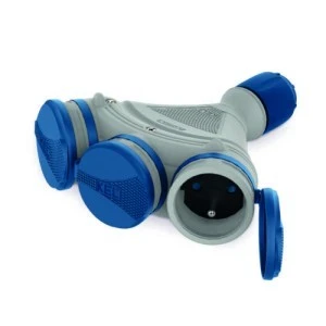 Rozgałęźnik do przedłużacza 3‑gniazda z/u 16A 250V IP54 szary/niebieski GN‑X3/54 W‑01157