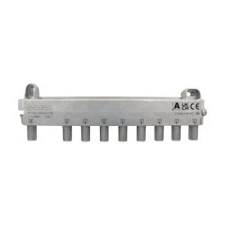 8-drożny rozgałęźnik ze złączami F do sygnałów CATV. Charakteryzuje się niskimi stratami przelotowymi dzięki miniaturyzacji elementów elektronicznych, co poprawia jego zachowanie elektryczne. Obudowa typu Zamak zapewnia doskonałe ekranowanie.