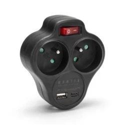 Rozgałęźnik podwójny z wyłącznikiem + USB‑A + USB‑C czarny Montis MT144‑BK
