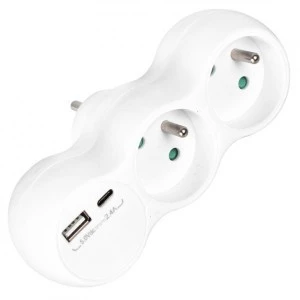 Rozgałęźnik sieciowy 2 gniazda French z uziemieniem + USB‑C 2.4A + USB‑A 2.4A VA0358 VAYOX