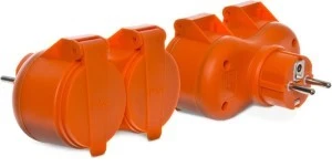 Rozgałeźnik wtyczkowy 2‑gniazda z/u IP44 pomarańczowy R‑270P