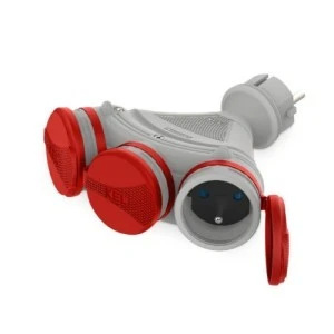 Rozgałęźnik wtyczkowy 3‑gniazda z/u 16A 250V IP54 szary/czerwony GN‑X3/54 W‑01151