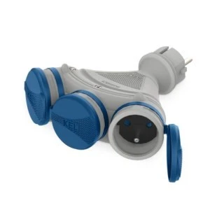 Rozgałęźnik wtyczkowy 3‑gniazda z/u 16A 250V IP54 szary/niebieski GN‑X3/54 W‑01153