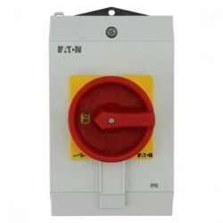 Rozłącznik 40A 3P 1Z+1R w obudowie IP65 z blachą EMC czerwono‑żółta rączka z blokadą P1‑40/I2H/MBS/SVB/HI11 199918