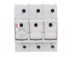 Rozłącznik STV D02 63A 3P dzięki swojej budowie przeznaczony jest bo montażu na szynie montażowej TH-35. Dostosowany jest do montażu wkładek topikowych wielkości D02 oraz D01 pod warunkiem zastosowania odpowiednich wstawek redukcyjnych. Rozłącznik umożliwia jednoczesne rozłączanie trzech torów prądowych poprzez zmianę położenia dźwigni rozłącznika. Prąd znamionowy aparatu wynosi 63A zaś napięcie znamionowe 400V.