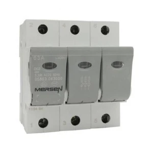 Opis: Rozłącznik bezpiecznikowy DIN D0 Linocur® rozmiar D02 440VAC 63A 3-biegunowy, szerokość 79,80 mm
