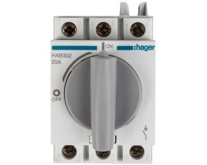 Rozłącznik izolacyjny 3P 20A HAB302. Produkt solidny, dobrze wykonany, łatwy montaż.