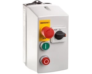 Rozrusznik bezpośredni, z wyłącznikiem silnikowym, stycznikiem i przyciskiem grzybkowym w obudowie izolacyjnej.