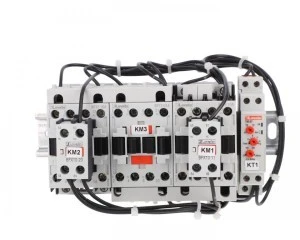 W skład rozrusznika wchodzą 3 styczniki wraz zestykami pomocniczymi, przekaźnik czasowy do tego typu rozruszników – typ TMST oraz mostki łączeniowe.