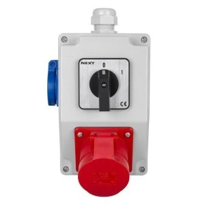 Zestaw instalacyjny z wyłącznikiem nadprądowym 16A wyposażony jest we włącznik o mocy 16A, i 2 gniazdka boczne. Pierwsze 3-fazowe, gniazdko pięciożyłowe z przewodem uziemiającym i kolejne gniazdko 1-fazowe , 3-żyłowe na napięcie 230V. Produkt posiada stopień ochrony IP44, co oznacza, że może być również stosowany w pomieszczeniach o podwyższonym stopniu wilgotności. Zestaw posiada odporność na uderzenia IK 08. Pracuje w temperaturze od -25 do 80°C i m stopień palności HB UL94. Wytrzymuje próbę palności 650°C i próbę termiczną 70°C. Zestaw charakteryzuje się ergonomicznym i nowoczesnym designem. Zasilanie gniazd bocznych doprowadza się poprzez listwę zaciskową.