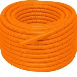 Rura karbowana elektroinstalacyjna 16/10,7mm giętka peszel z pilotem i smarowaniem 320N bezhalogenowa, pomarańczowa 100m TUBIFOR
