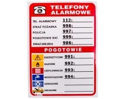 Samoprzylepna tabliczka ostrzegawcza /Telefony alarmowe 210x150/ 93/210X150/F