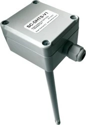 Kanałowy przetwornik wilgotności i temperatury SC-DHTS, oparty na wysokiej jakości czujniku firmy Sensirion serii SHT, służy do pomiaru wilgotności względnej i bezwzględnej, temperatury, punktu rosy oraz entalpii powietrza w kanałach wentylacyjnych. Mierzone przez czujnik wartości prezentowane są przez dwa niezależne wyjścia analogowe, z których każde może pracować w jednym z pięciu możliwych do wyboru standardów przemysłowych – 0-10V, 2-10V, 4-20mA, 0-20mA oraz 0-5V. Dodatkowo, przetwornik posiada wbudowany port komunikacyjny RS485 obsługujący protokół Modbus RTU, pozwalający na odczyt mierzonych wartości