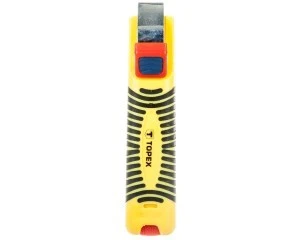 Ściągacz izolacji kabli i przewodów TOPEX (nr ref. 32D810) przeznaczony do prac z przewodami o przekroju kolistym. Posiada precyzyjnie regulowane ostrze oraz śrubę umożliwiającą dostosowanie głębokości cięcia. Produkt dobrze leży w dłoni, co podnosi komfort pracy. Marka TOPEX skierowana jest do majsterkowiczów.