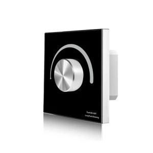 Przewodowy ściemniacz do żarówek 230V w formie panelu naściennego przeznaczony dla instalacji składającej się z ściemnialnych żarówek LED 230VAC. Ściemniacz pozwala na pełną kontrole w postaci załączania/wyłączania oraz ściemniania/rozjaśniania oświetlenia LED przy użyciu obrotowego potencjometru. Ściemniacz LED naścienny S1-K(B) pozwala na kontrole jednej strefy z wykorzystaniem zsynchronizowanej przewodowej łączności. Zaletą sterownika LED jest opcjonalna komunikacja radiowa, umożliwiająca rozbudowę instalacji LED o bezprzewodową łączność radiową, wykorzystując do tego dodatkowy odbiornik radiowy bazujący na częstotliwości 2,4Ghz. Ściemniacz do żarówek S1-K(B) wyróżnia się dwoma trybami płynnego ściemniania jak również został zaopatrzony w funkcje blokady natężenia światła, która po ustaleniu danej jasności nie przekracza tej wartości.