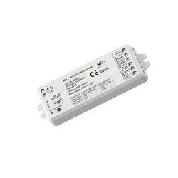 Ściemniacz LED autonomiczny 2w1 (WiFi) przeznaczony do kontroli nad instalacją składającą się z monochromatycznego oświetlenia (np. taśma LED jednokolorowa) bądź ze zmienną temperaturą barwową CCT (np. taśma LED CCT) bez pomocy dodatkowych urządzeń. Sterownik led WT1 pozwala na ściemnianie/rozjaśnianie oraz zmianę temperatury barwowej w zakresie 2700-6500K z wykorzystaniem sieci WiFi, która pozwala na komunikacje z aplikacją Tuya, przeznaczoną na nasze urządzenia mobilne (np. smartfony). Produkt posiada szereg zabezpieczeń takich jak - zabezpieczanie termiczne, zwarciowe czy zapobiegające odwrotnemu podłączeniu. Ściemniacz do LED cechuje się szerokim zakresem napięcia wejściowego/wyjściowego 12-36V DC oraz obciążalnością wyjściową równą 10A.