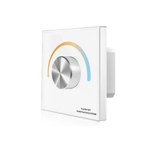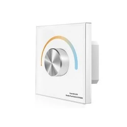 Przewodowy ściemniacz LED w formie panelu naściennego przeznaczony dla instalacji LED ze zmienną temperaturą barwową CCT (np. taśma LED CCT). Sterownik LED T2-K umożliwia kontrole w postaci załączania/wyłączania, ściemniania/rozjaśniania oraz zmianę temperatury barwowej CCT w zakresie 2700-6500K przy użyciu przy użyciu obrotowego potencjometru. Ściemniacz LED naścienny T2-K z przeznaczeniem dla jednej z dostępnych stref z wykorzystaniem zsynchronizowanej przewodowej łączności. Dodatkowym atutem sterownika LED jest komunikacja radiowa, pozwalająca na rozbudowę instalacji LED o bezprzewodową łączność radiową, wykorzystując do tego dodatkowy odbiornik radiowy bazujący na częstotliwości 2,4Ghz. Panel T2-K charakteryzuje się montażem do standardowej puszki fi60 a także wysoką jakością wykonania.