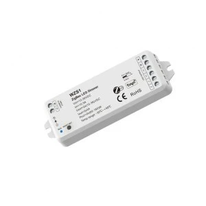Ściemniacz LED autonomiczny 5w1 (ZigBee 3.0) przeznaczony do kontroli nad instalacją składającą się monochromatycznego oświetlenia (np. taśma LED jednokolorowa) bez pomocy dodatkowych urządzeń. Stciemniacz led WZS1 pozwala na ściemnianie/rozjaśnianie oraz włączanie i wyłączanie z wykorzystaniem komunikacji opartej na protokole ZigBee 3.0. Ściemniacz led WZS1 pozwala również na komunikacje z aplikacją Tuya, przeznaczoną na nasze urządzenia mobilne (np. smartfony). Produkt posiada kompaktową obudowę, która posiada wejście DC umożliwiające bezpośrednie połączenie z zasilaczem napięciowym. Ściemniacz do LED cechuje się szerokim zakresem napięcia wejściowego/wyjściowego 12-36V DC oraz obciążalnością wyjściową równą 10A.