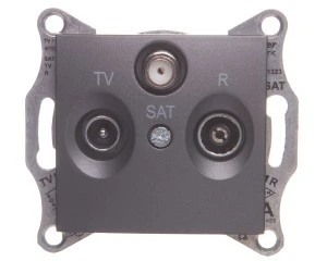 Gniazdo antenowe przelotowe R/TV/SAT 4dB w kolorze grafitowym z możliwością łączenia z ramką w jednym z kilku dostępnych kolorów. Produkt trwały, łatwy w montażu, przystępny cenowo.