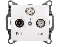 Gniazdo antenowe końcowe TV/SAT/SAT w kolorze białym z możliwością łączenia z ramką w jednym z kilku dostępnych kolorów. Produkt trwały, łatwy w montażu, przystępny cenowo.