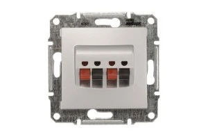 Innowacyjna linia Sedna charakteryzuje się gniazdami oraz różnego rodzaju łącznikami, które wyróżniają się ciekawym designem oraz unikalną, płaską formą. Przykładem takiego produktu jest prezentowane podwójne gniazdo głośnikowe. Producent zaleca trwały podtynkowy montaż gniazda za pomocą sprawdzonej metody na pazurki oraz na śrubę.Ponadto gniazdo zostało wykonane z wyjątkowo trwałego, certyfikowanego tworzywa termoplastycznego. Ten rodzaj materiału nie przywiera do szkła, metali oraz do innych tworzyw, a ponadto jest szczególnie odporny na ścieranie, co ma wpływ na dłuższy czas użytkowania produktu. Należy jednak pamiętać, że tworzywo zachowuje swój kształt w wyłącznie w temperaturze pokojowej. Produkt jest dostępny w ciekawym, aluminiowym kolorze z eleganckim, błyszczącym wykończeniem. Znana i ceniona na całym świecie marka Schneider Electric powstała już w 1836 roku. Od tego czasu koncern zapracował na zaufanie milionów klientów na całym świecie.