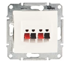 SCHNEIDER ELECTRIC jest uznawany za jednego ze specjalistów w produkcji aparatury przeznaczonej do sterowania zasilaniem elektrycznym. Firma zyskała uznanie ekspertów w dziedzinie elektronicznej i została uznana za lidera w rozdziale energii elektrycznej. Aby ułatwić swoim klientom dostęp do sprzętu dostępnego w asortymencie, koncern podzielił go na serie, w których umieścił poszczególne urządzenia w kolekcjach, zgodnie z zastosowaniem aparatury. Jedną z takich serii jest Sedna, w której znaleźć można wysokiej klasy, eleganckie, zarazem praktyczne artykuły w postaci łączników oraz gniazd. Powyższe gniazdo głośnikowe ma podwójny model. Jest dostępne w kolorze kremowych o odcieniu 30133. Składa się z elementu podstawowego z centralną plakietką osłonową. Urządzenie wykonano z tworzywa termoplastycznego wysokiej jakości. Powierzchnia produktu jest błyszcząca i nieobrabiana. Gniazdo przeznaczone jest do montażu podtynkowego za pomocą śrub i pazurków. Artykuł nie posiada kostki łączeniowej. Nie ma też oznaczenia. Urządzenia nie wyposażono w uchwyt kablowy odciążający ani w uchwyt transportowy.