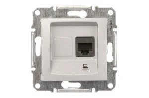 Uznany koncern Schneider Electric to firma z tradycjami. Marka już od 1836 roku pracuje na zaufanie swoich klientów. Jedną z popularnych linii marki jest seria Sedna. Produkty wchodzące w jej skład wyróżniają się między innymi: ciekawym kształtem oraz unikalną płaską formą. Ponadto urządzenia wyróżnia ich teleskopowa konstrukcja, dzięki której urządzenia można zamontować nawet na nierównej powierzchni. Prezentowane gniazdo komputerowe pojedyncze zostało wyposażone we wtyk zaciskany RJ45. Przypisano je również do kategorii 5e, co świadczy o jego przystosowaniu do częstotliwości 100MHz, która jest stosowana w małych biurach oraz w domach jednorodzinnych. Niewątpliwą zaletą tego produktu jest tworzywo termoplastyczne, z którego zostało wykonane. Ten rodzaj materiału jest odporny na ścieranie, a ponadto nie przywiera do szkła, metalu oraz do innych tworzyw. Producent zaleca podtynkową instalację gniazda za pomocą sprawdzonego sposobu na pazurki oraz na śrubę. Produkt jest dostępny w szlachetnym aluminiowym kolorze z eleganckim, błyszczącym wykończeniem.