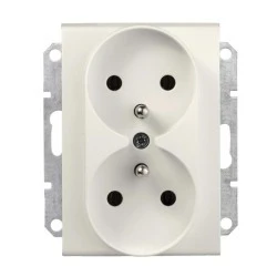 LOGI Gniazdo podwójne 2x2P+Z kompletne z przesłoną styków śrubowe 16A 250V Biały 25093