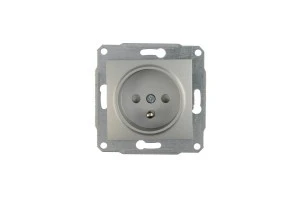 Gniazdo pojedyncze z uziemieniem w kolorze aluminium z możliwością łączenia z ramką w jednym z kilku dostępnych kolorów. Produkt trwały, łatwy w montażu, przystępny cenowo.