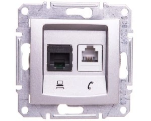 Gniazdo teleinformatyczne RJ11 i RJ45 w kolorze aluminium z możliwością łączenia z ramką w jednym z kilku dostępnych kolorów. Produkt trwały, łatwy w montażu, przystępny cenowo.