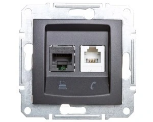 Gniazdo teleinformatyczne RJ11 i RJ45 kat.5e UTP w kolorze grafitowym z możliwością łączenia z ramką w jednym z kilku dostępnych kolorów. Produkt trwały, łatwy w montażu, przystępny cenowo.