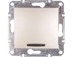 Łącznik jednobiegunowy z podświetleniem w kolorze satynowym. Nowoczesny design, łatwy montaż, przystępna cena, możliwość dobru ramki w jednym z kilku kolorów.