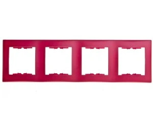 Elegancka i przyjemna w dotyku ramka pionowa czterokrotna w kolorze czerwony. Możliwość wybrania modułów w kilku dostępnych kolorach.
