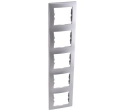 Elegancka i przyjemna w dotyku ramka pionowa pięciokrotna w kolorze aluminium. Możliwość wybrania modułów w kilku dostępnych kolorach.