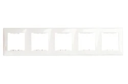 Ramka pięciokrotna, pozioma serii Sedna marki Schneider Electric. Seria Sedna, to doskonała propozycja dla wszystkich ceniących klasyczne piękno, jak również dla preferujących nowoczesne wzornictwo. Jej łagodna forma, ultra cienka ramka z tworzywa o zwiększonej odporności na promienie UV oraz rozbudowany asortyment wysokiej jakości, czynią serię Sedna idealną alternatywą dla tradycyjnych łączników i gniazd.