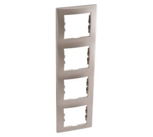 Elegancka i przyjemna w dotyku ramka pionowa czterokrotna w kolorze satynowym. Możliwość wybrania modułów w kilku dostępnych kolorach.